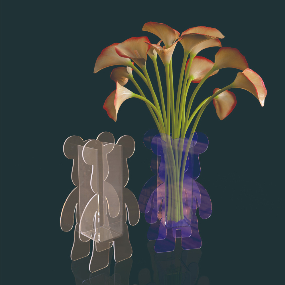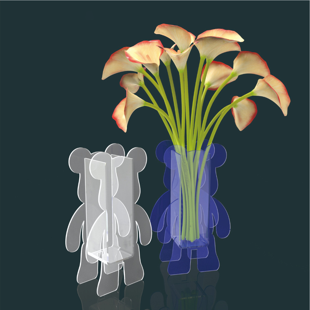 Acrylic Multifunctional Bear-Shaped Flower Box – Creative Desktop Vase for Home & Office Decor