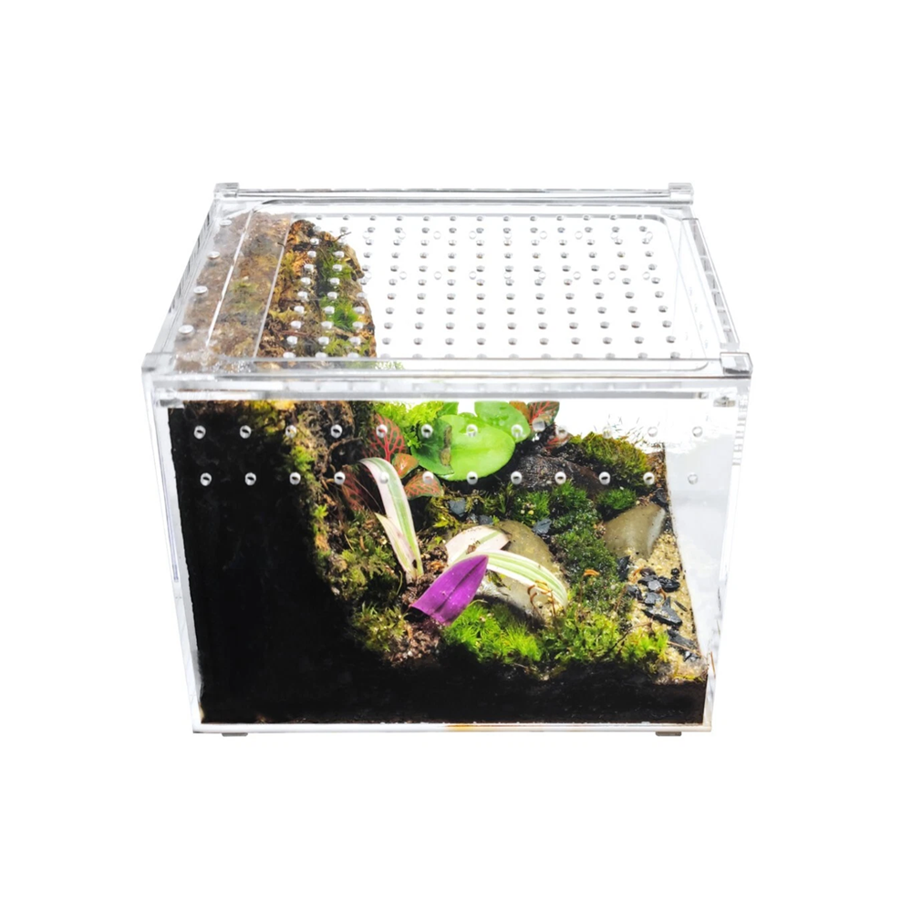 This Acrylic Terrarium with Magnetic Lid offers a complete ecosystem in an elegant enclosure, featuring crystal-clear acrylic panels that provide unobstructed 360-degree viewing of your miniature world. The secure magnetic closure system ensures easy access while maintaining a safe environment, complemented by precision micro-ventilation holes across the lid that promote optimal airflow for plant and animal health.