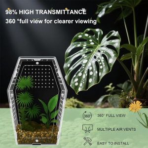 Reliable Material: Made of sturdy 3mm-thick acrylic, this transparent enclosure offers durability and clarity, and is 3x more scratch-resistant than standard glass. Enjoy unparalleled 360° visibility, allowing you to keep a close eye on your pet.