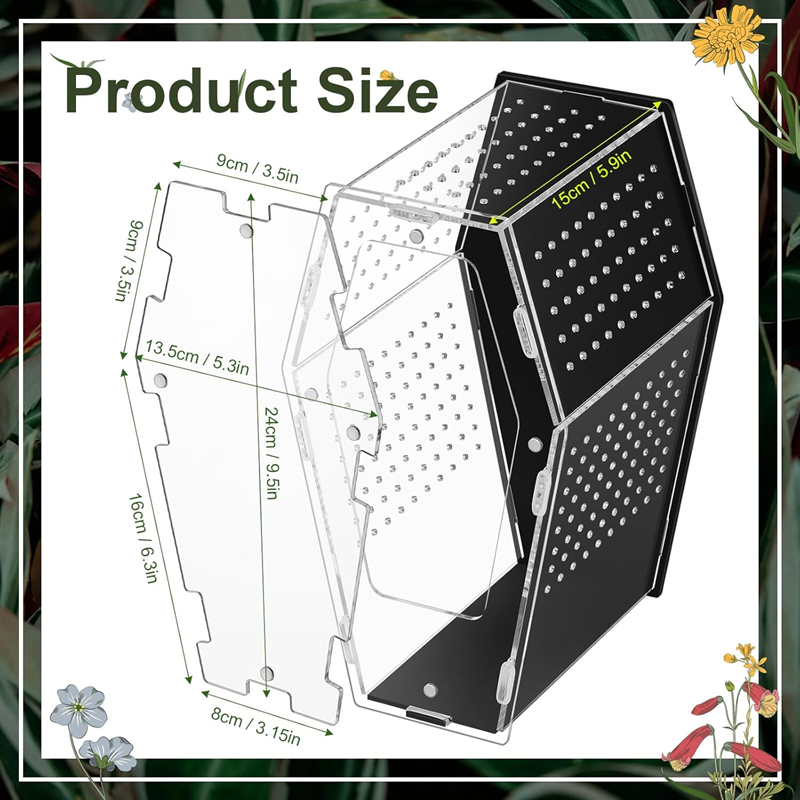 Optimal Comfort Size: Measuring approximately 5.1 x 6 x 9.5 inches (13 x 15.2 x 24 cm), this terrarium provides an ideal space for jumping spiders, small reptiles, and other miniature animals, allowing them to move freely and ensuring their comfort in a confined yet spacious environment.