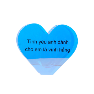 This Iridescent Heart Acrylic Vase captures light and emotion with its captivating multichrome finish . The vase is delicately engraved with the heartfelt Vietnamese phrase “Tình yêu anh dành cho em là vĩnh hằng”(My love for you is eternal), making it a meaningful gift for expressing lasting affection. Crafted from high-gloss, lightweight acrylic, the heart-shaped vessel holds a delicate bouquet of white sweet pea blossoms, symbolizing devotion and bliss.