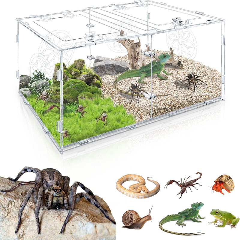 Large-Capacity Reptile Habitat: This reptile spider habitat size is 15.7×7.8×7.8in. This reptile cage features a dual-compartment design, with each compartment boasting a spacious activity area. It provides ample space for pets to meet their daily movement and exploration needs.