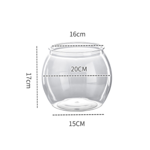 Very good quality. Small balloon fish bowl made of hard plastic, totally transparent and thick. Where we can decorate with fish, turtles or flowers.