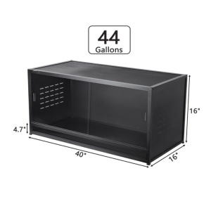【Sturdy PVC Enclosure with Support Bars】: Equipped with support bars on the top screen, Reptile tank ensures secure placement of lighting fixtures without the risk of falling. The bottom panel also features support bars, guaranteeing stability even when adding decorations weighing up to 105 lbs.