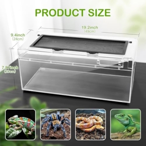- 【Outstanding Design Details】Different from the ordinary acrylic material terrarium, our terrarium never breaks, the PC terrarium adopts a one-piece design, with no need to assemble, waterproof bottom makes this tank can be used both as a desert terrarium and a rainforest tank, the feeding cover at the top, easy to feed your pet and prevent escape