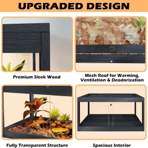 【Premium Reptile Enclosure】We offer an excellent choice for reptile enthusiasts, providing a comfortable habitat for your pet reptiles. Meticulously crafted from top-tier wood with polyester coatings and acrylic materials, our enclosure boasts transparency and durability. Please Note: this tank is not suitable for holding water, all decorations and heap lamps are NOT included.